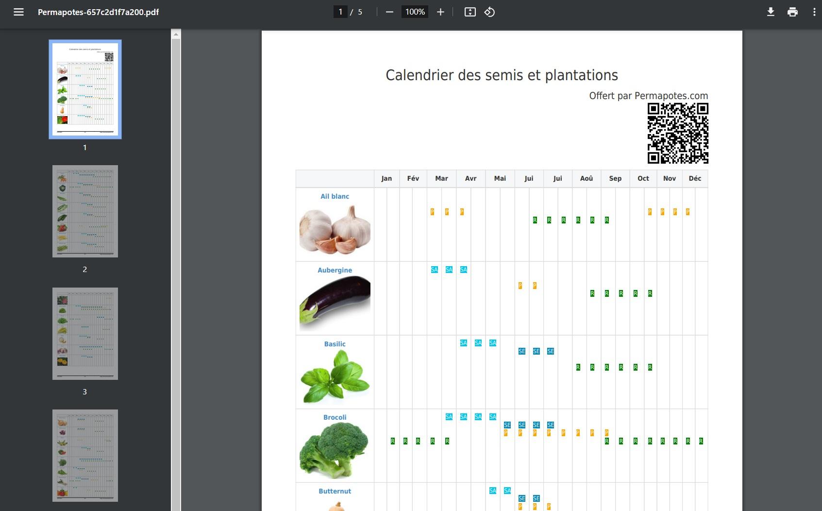 Jusqu’à présent, quand vous exportiez en PDF ou imprimiez le calendrier des semis, vous retrouviez à la place des images des plantes une liste de QR Codes. Malheureusement, les lecteurs de QR Codes avaient du mal à gérer plusieurs QR Codes sur une même page puisqu’ils redirigeaient l’utilisateur aléatoirement vers les fiches. J’ai donc décidé d’afficher à nouveau l’image des plantes dans la colonne de gauche. Un QR Code situé en haut du document vous redirigera vers la liste des fiches de culture disponibles sur notre site.